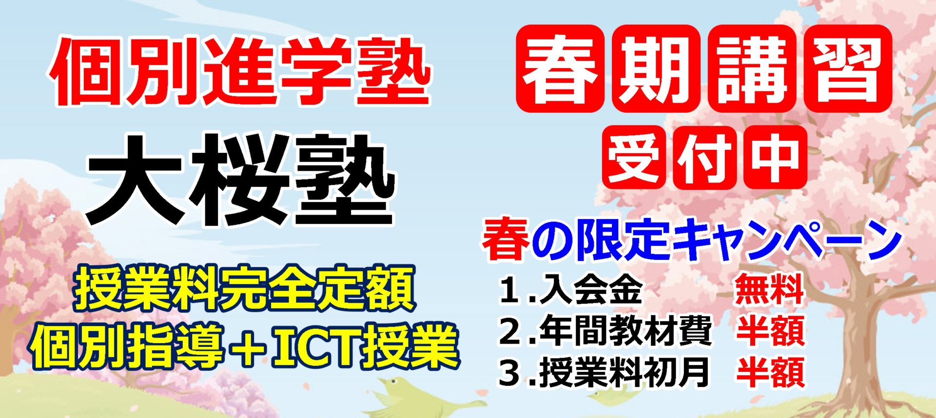 鎌取駅から徒歩10分、千葉市緑区の学習塾 大桜塾です! いよいよ今週末から私立高校の入試がスタートします。 今年は私立高校の授業料無償化という、昨年とは異なり大きな変更がありました。 そこで今回は現時点での私 […] - 2026年 新年のご挨拶