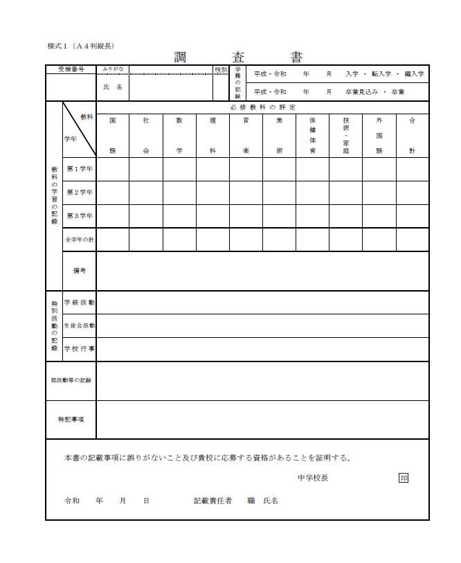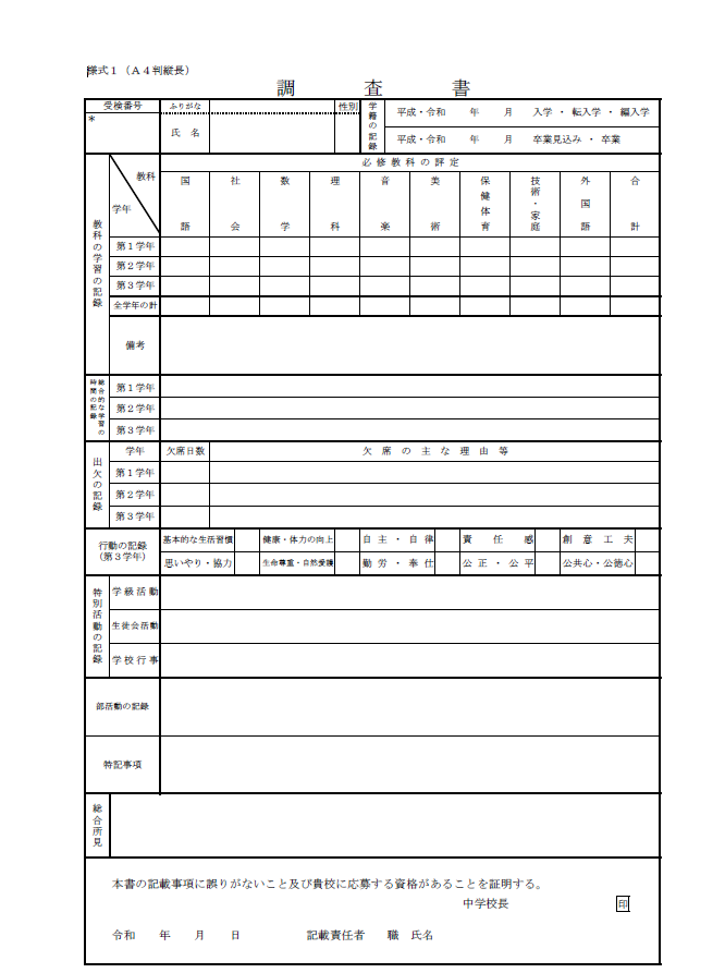 変更点がいくつかあるのですが、今回は調査書の変更点について取り上げていきます。