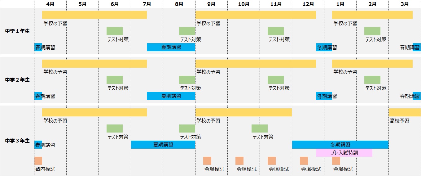 基本的には学校進度に合わせた授業を行っていきます。しかし前学年で苦手な部分を残している場合は遡っての授業や、勉強が苦手な場合は復習授業で進めるなどの対応も可能です。上位校を目指したいお子様には、学校進度にこだわらず授業を進め、より難易度の高い問題にも取り組んでいきます。